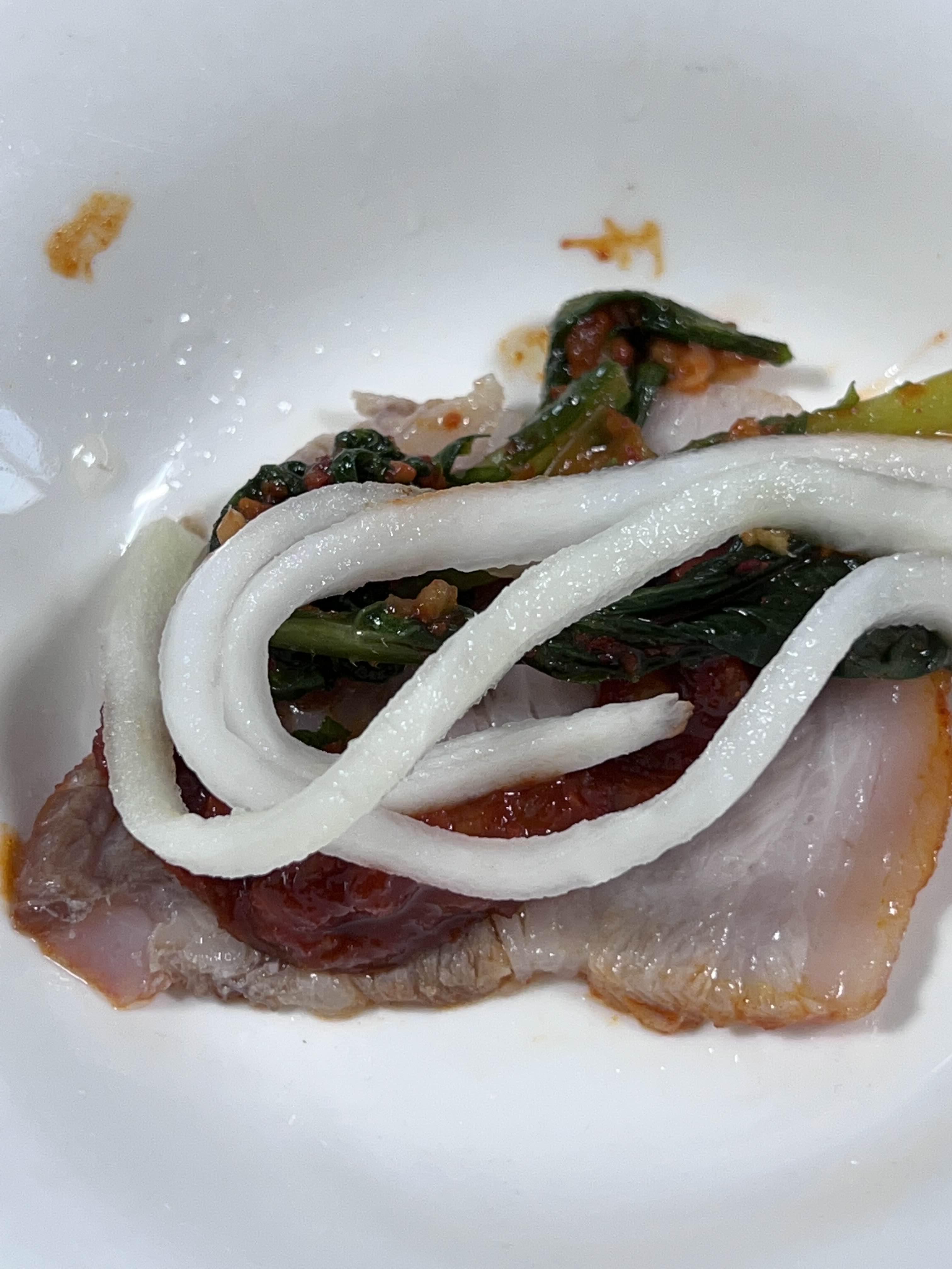 이렇게 하나씩 추가하면서 드셔보시면 좋겠습니다. 중간에 양념이 강해서 입이 텁텁하면 면수로 입을 한번 헹구고 다시 드시면 맛이 또 잘 느껴집니다.