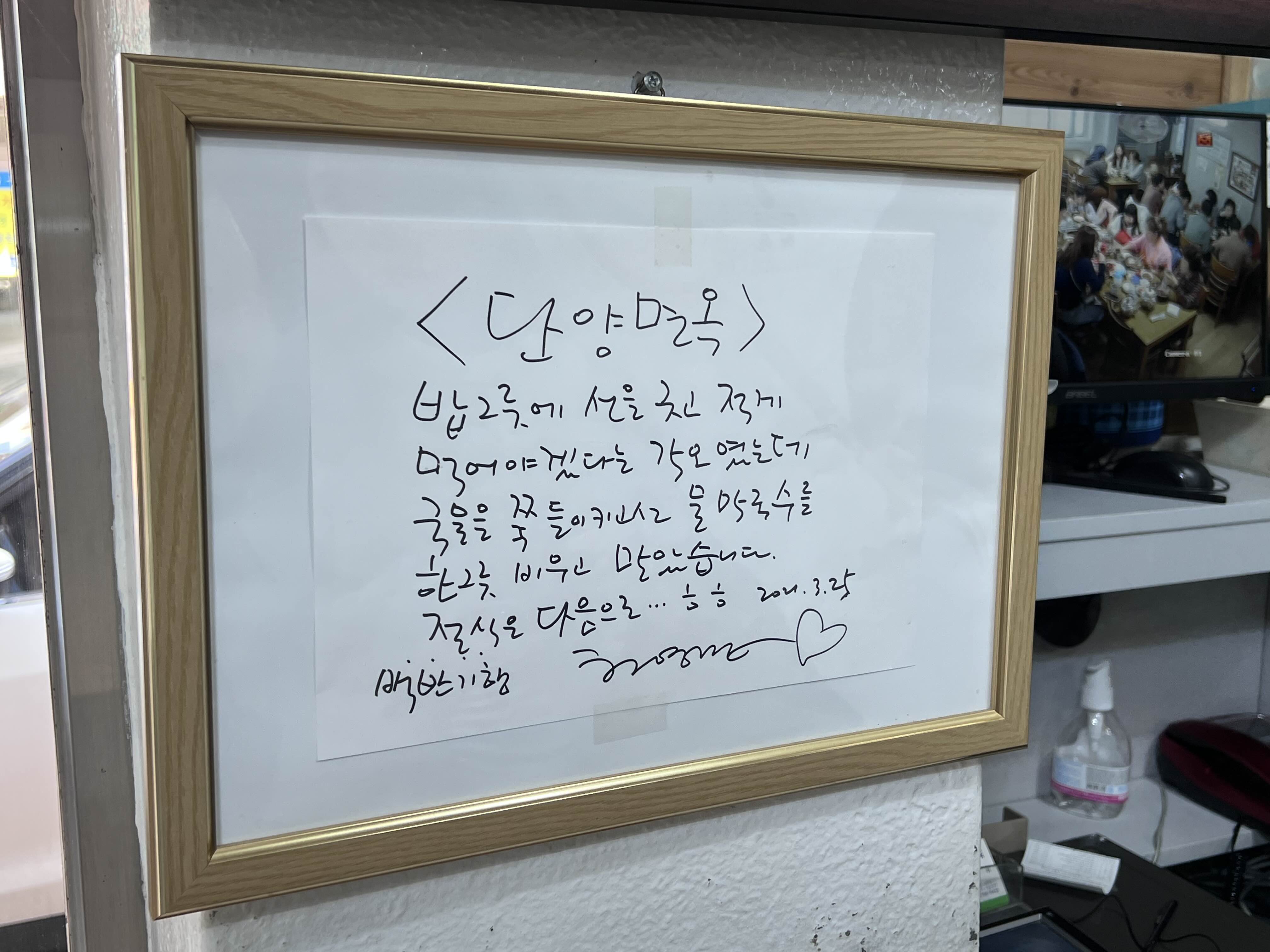 들어가면 방영된 인증 사진이랑 허영만 씨가 남겨놓은 글도 걸려 있습니다.