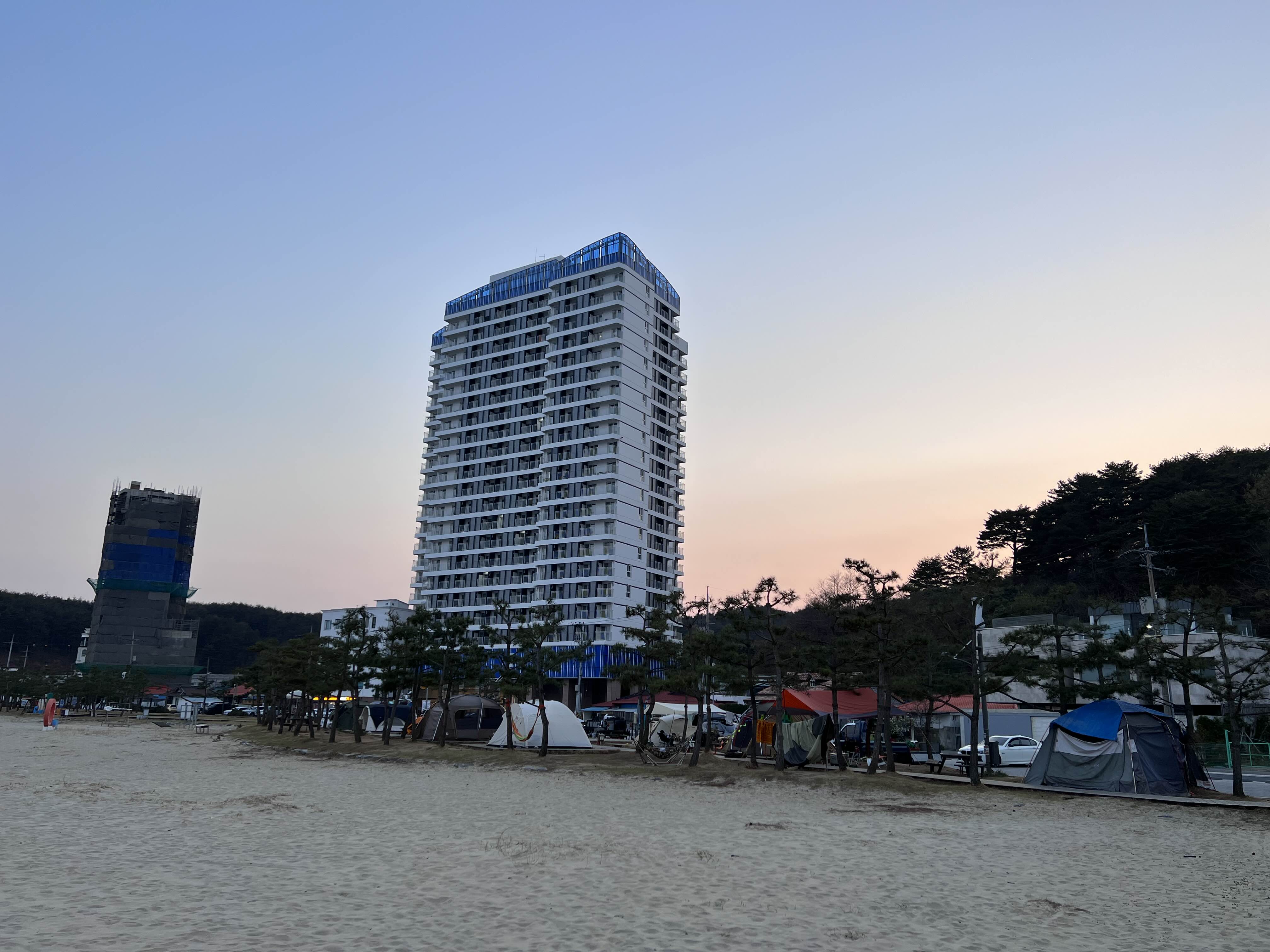 해변에 있어서 샤워장과 화장실이 있습니다. 왼쪽이 화장실이고 오른쪽에 있는 건물이 샤워실입니다. 샤워실은 비밀번호를 눌러야 들어갈 수 있습니다. 캠핑장 전용이라 캠핑장을 쓰면 비밀번호를 알려줍니다. 저희는 샤워장을 쓰지는 않았지만(보통 1박하면 잘 안 씻고 집에 와서 씻음) 씻을 만해 보였습니다. 화장실도 관리되는 듯하게 깨끗했습니다. 동산항에 있는 화장실도 써봤는데 화장실이 다 깨끗하고 좋았어요. 매일매일 관리하는 것 같아요. 양양에 관광객들이 꽤 오다 보니까 공중화장실을 깨끗하게 관리하고 있었어요. 샤워장은 사용을 안 하는 사람들이 많아서 그런지 아주 좋아 보이지 않았어요.(그래도 씻을 만함)