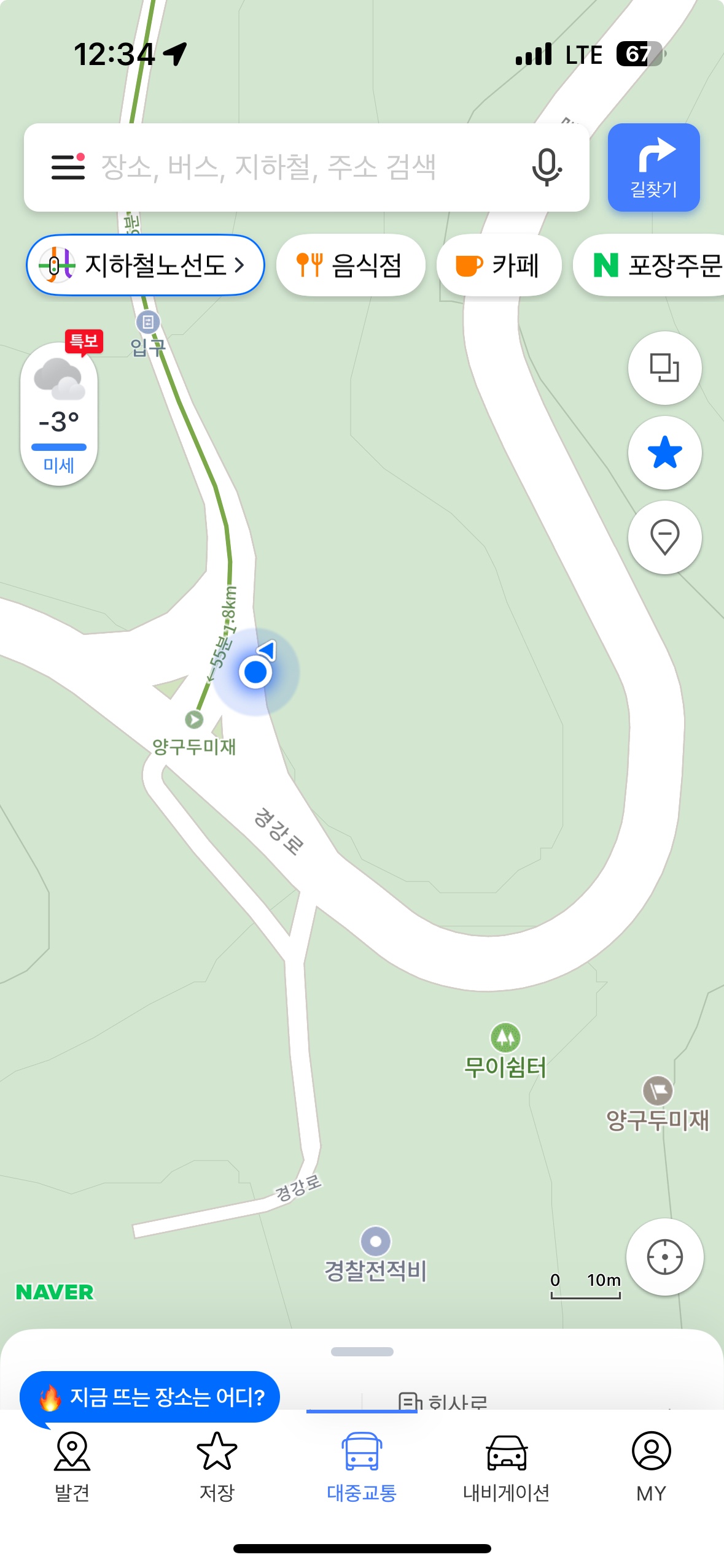 차량에 도착했을 때가 영하 5도였는데 시동이 걸리지 않았습니다...... 4-5번 시도 끝에 그냥 긴급출동 부르고 차에서 1시간 대기했습니다. 차로 가시는 게 가장 좋은데 시동이 잘 걸리는 차를 타고 가세요! 눈이 왔어도 아래 도로는 제설이 잘 되어 있어서 잘 내려왔습니다. 긴급출동 차가 와서 겨우 시동을 걸어서 집으로 돌아왔습니다.